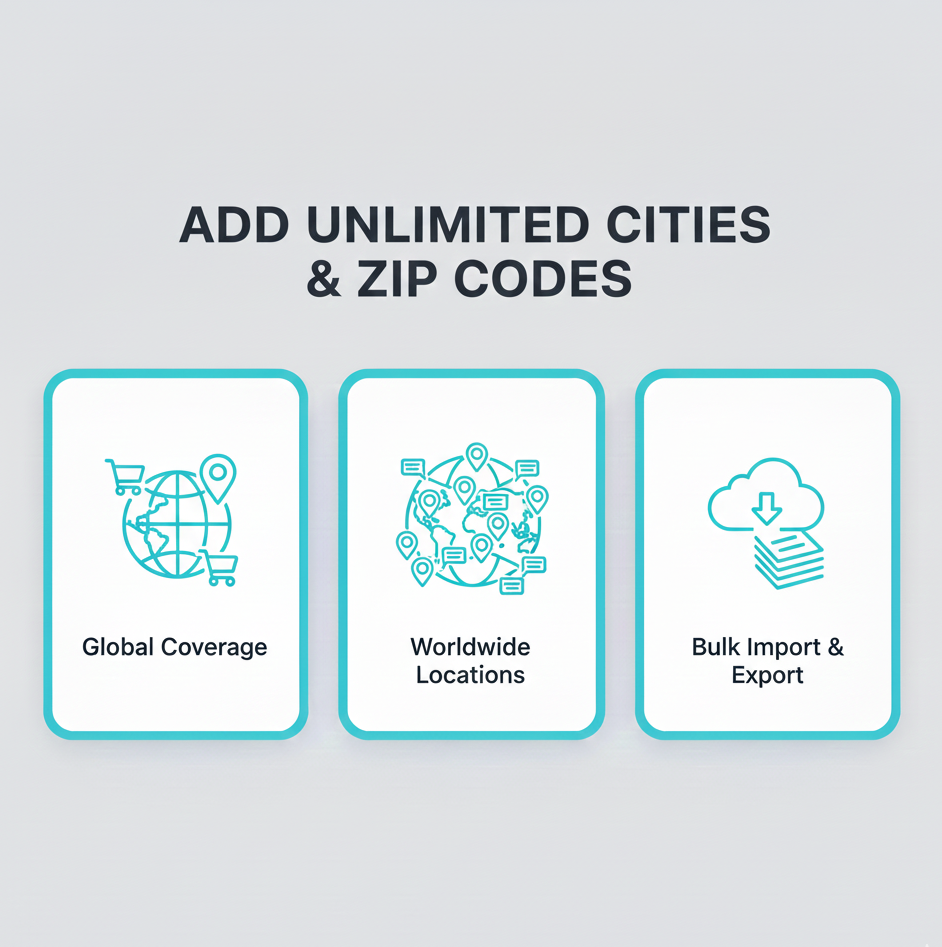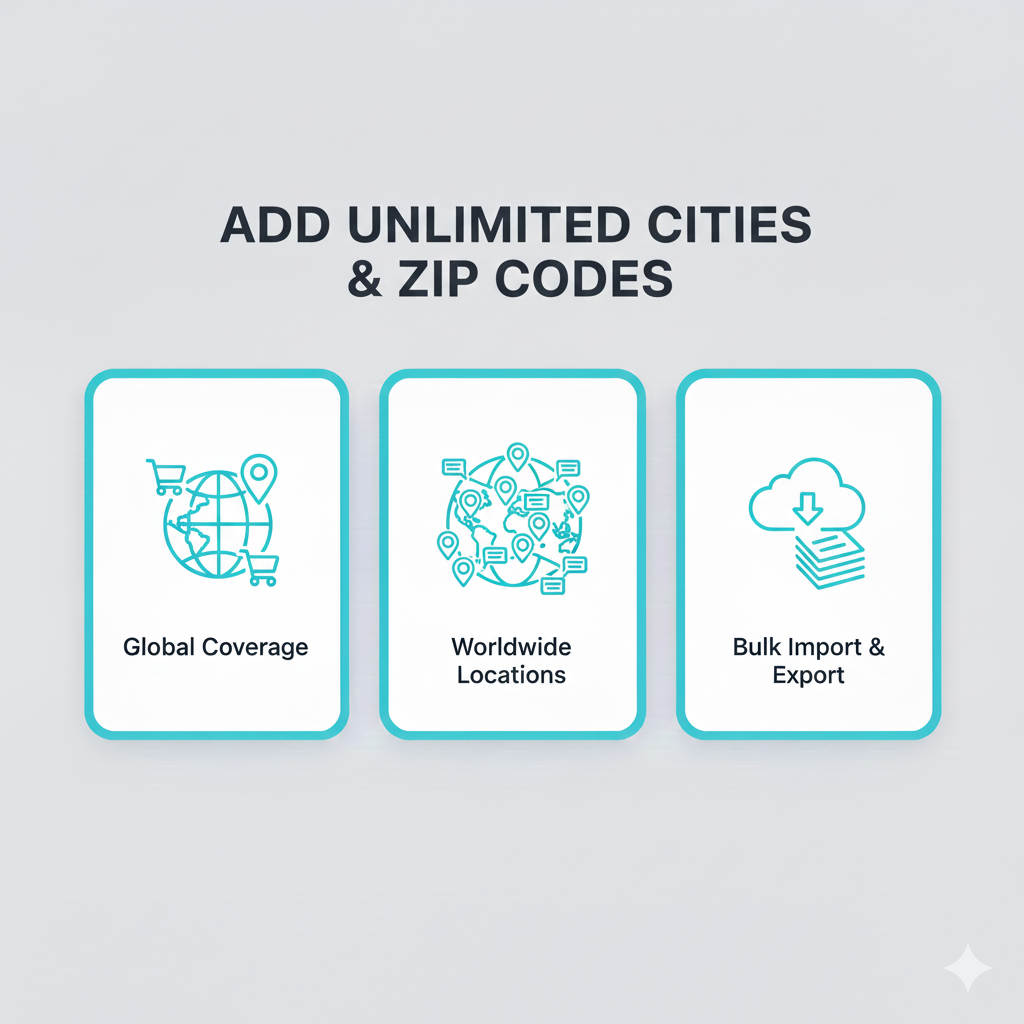 Set precise shipping costs for each city or ZIP/Postcode and calculate fees using fixed, weight-based, quantity-based, or subtotal-based pricing. Designed for local delivery, regional stores, and businesses that need full control over area-based shipping — without limitations.